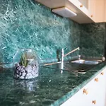 43m²のアパートはプライベートのビーチの近くにあります。 宿泊施設から自動車で15分離れた大天使ミカエル ガブリエル教会にも行くことができます。